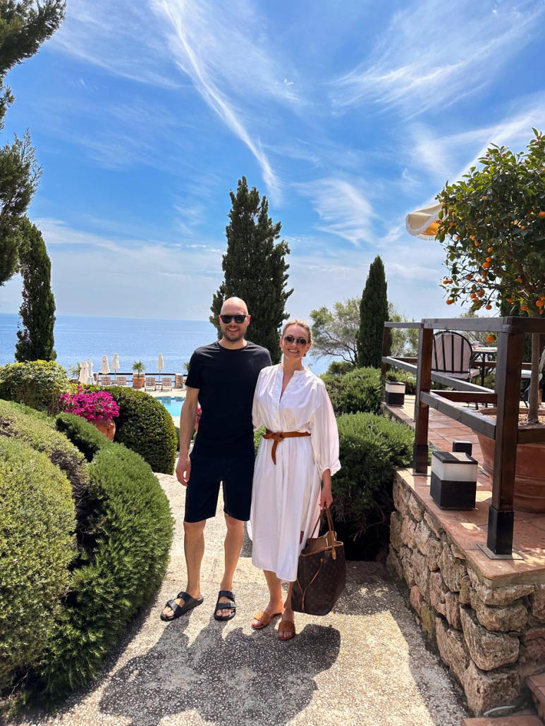 Bryllupsreisen gikk til Sør-Toscana og flotte Hotel Il Pellicano utenfor Porto Ercole. Brudeparet hadde fått anbefalt hotellet av en venninne i London, og det skuffet ikke. Fra start til slutt ble de oppvartet med nydelig service fra hotel – lets dyktige ansatte, hadde omvisning i hotellets rikholdige og berømte vinkjeller og nøt deilig mat fra hotellets to restauranter både til frokost, lunsj og middag. Hotel Il Pellicano ble etablert på 1960-tallet av en kjent italiensk familie. Gjennom årene har hotellet tatt imot alt fra Hollywoodstjerner, kongelige, europeisk sosietet og helt vanlige folk som ønsker å nyte noen ekstragavante feriedager langs toskanske klipper mot asurblått hav. Hotel Il Pellicano innfridde absolutt forventningene til ei romantisk bryllupsreise. Brudeparet vil definitivt tilbake.