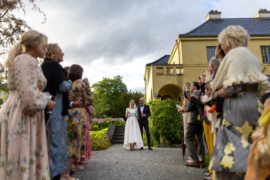 Etter ringutveksling, kyss og lovnad om å elske hverandre, gikk brudeparet ut av Sala Roasa til tonene av «Can’t help falling in love» av Elvis. Ute ventet forloverne og flere hundre skuelystne som klappet, ropte og forlangte brudeparets kyss. Og det fikk de.