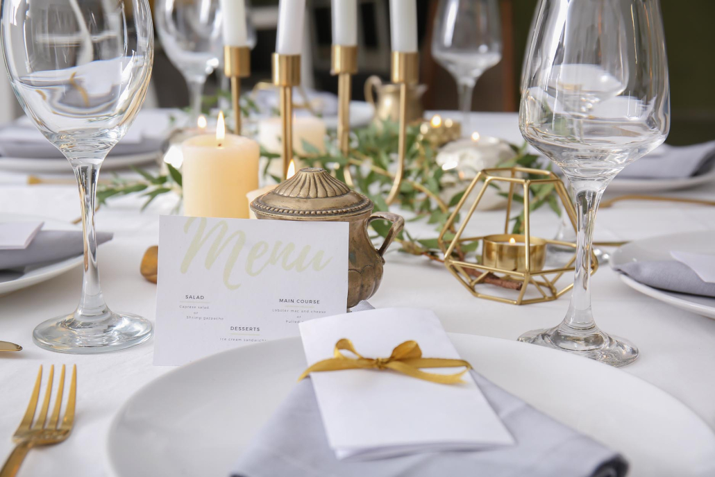 Borddekkingen setter stemningen for bryllupsfesten. Her får du inspirasjon til borddekkingen!