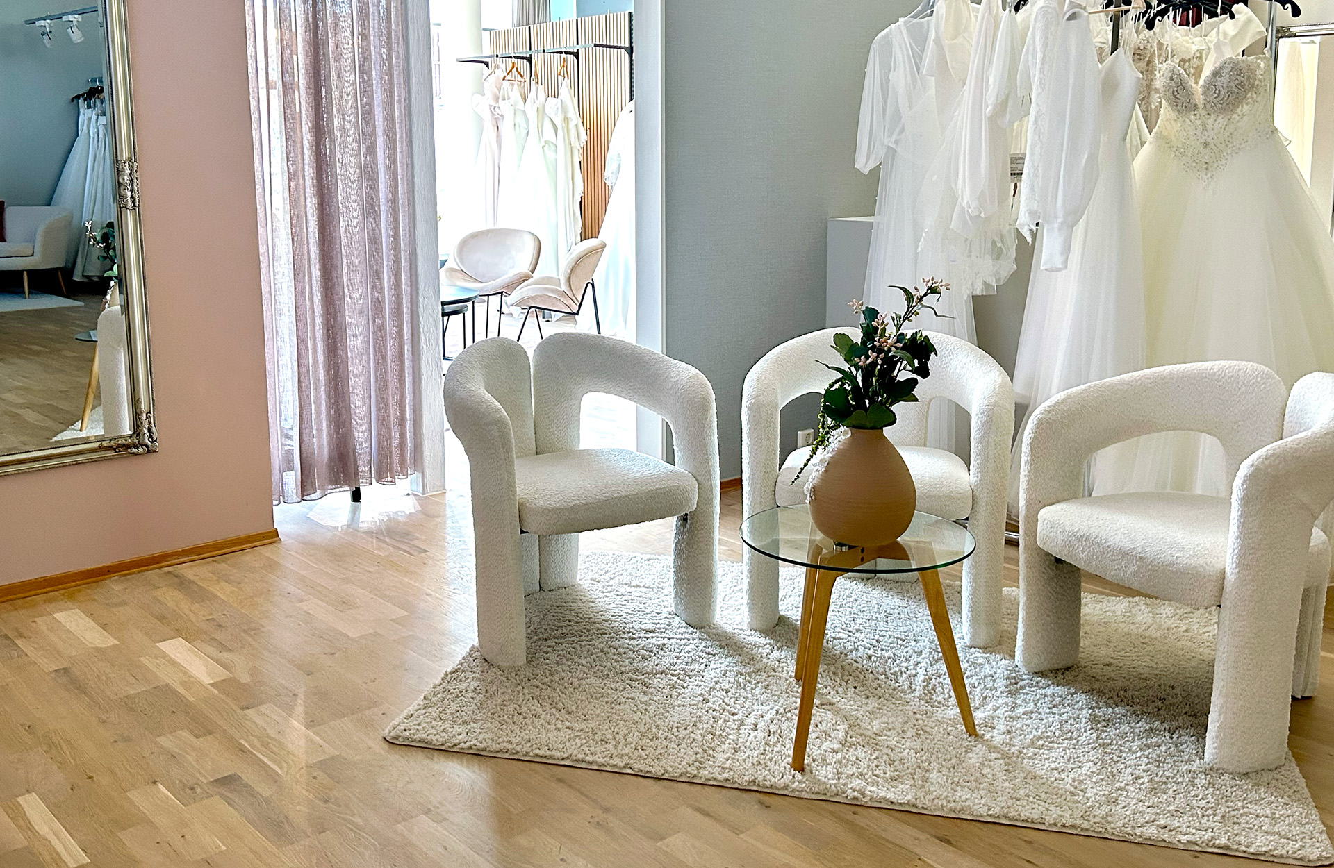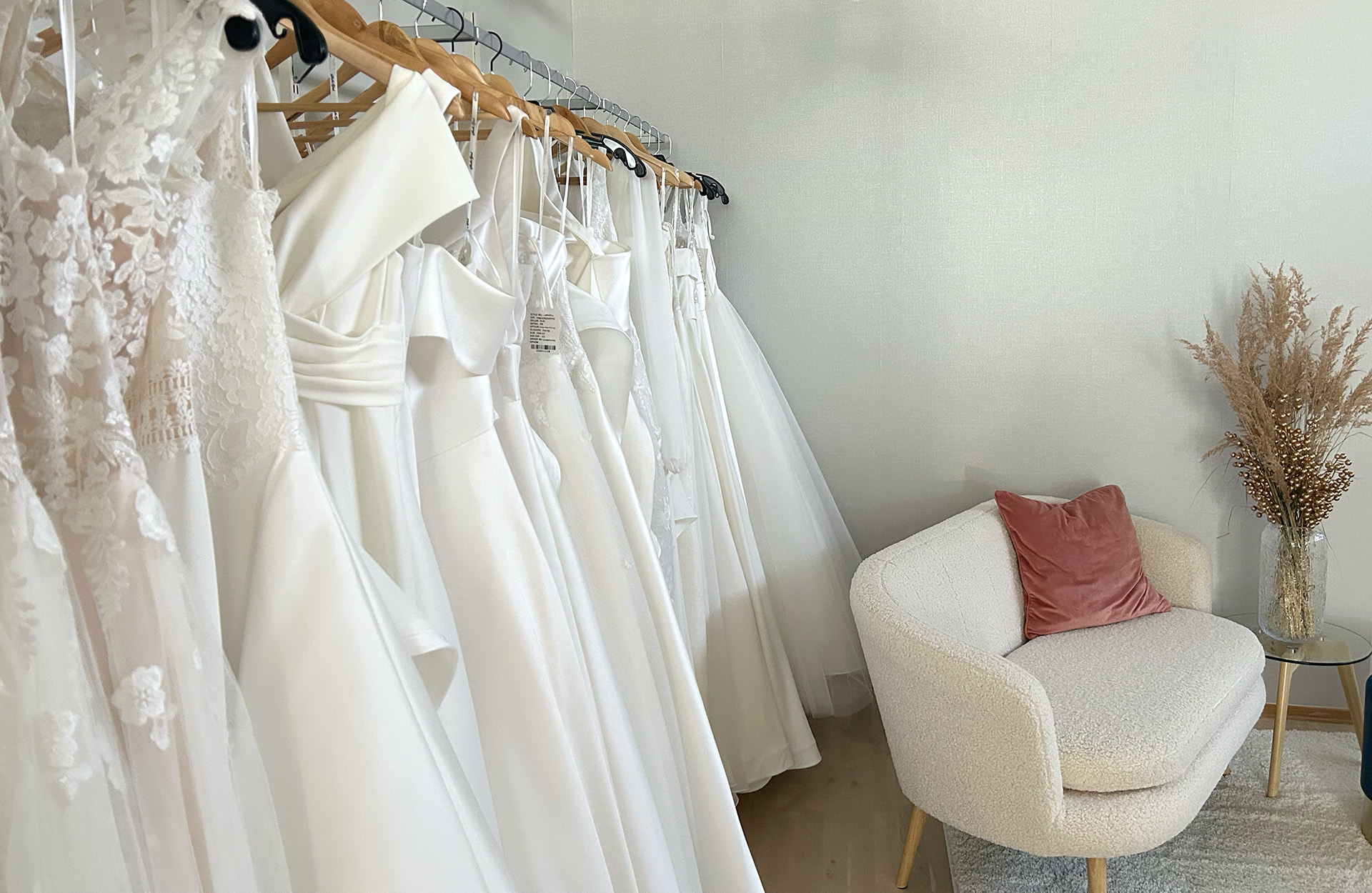 For at du skal få en rolig og avslappet opplevelse med fullt fokus fra oss, ønsker vi at alle som vil prøve kjoler bestiller en avtale. Vil du bare få en oversikt over utvalget, kan du gjerne ringe oss – da finner vi et tidspunkt som passer for en titt, uten å forstyrre andre prøvinger. Vi ønsker at alle som besøker oss skal få vår fulle oppmerksomhet og svar på alt de lurer på.