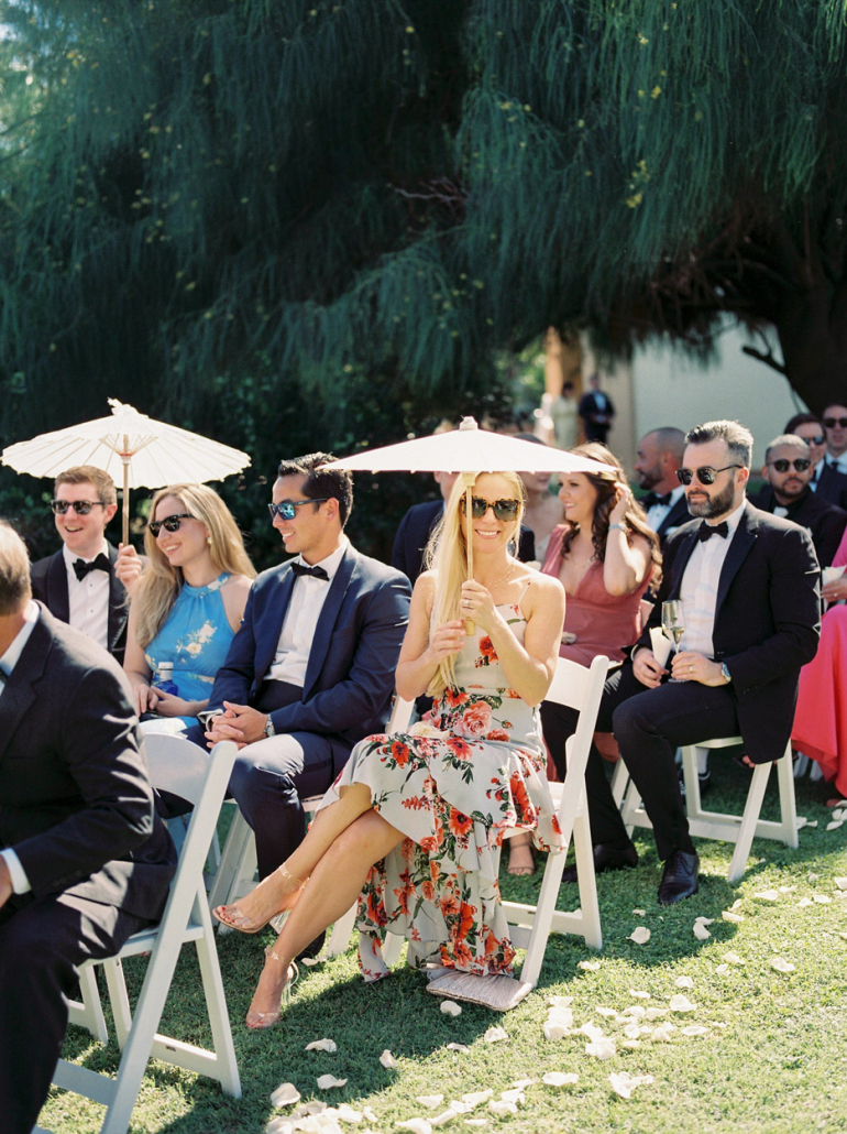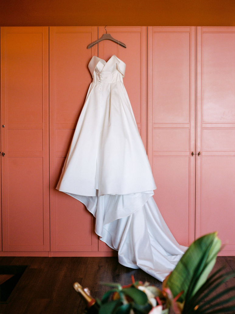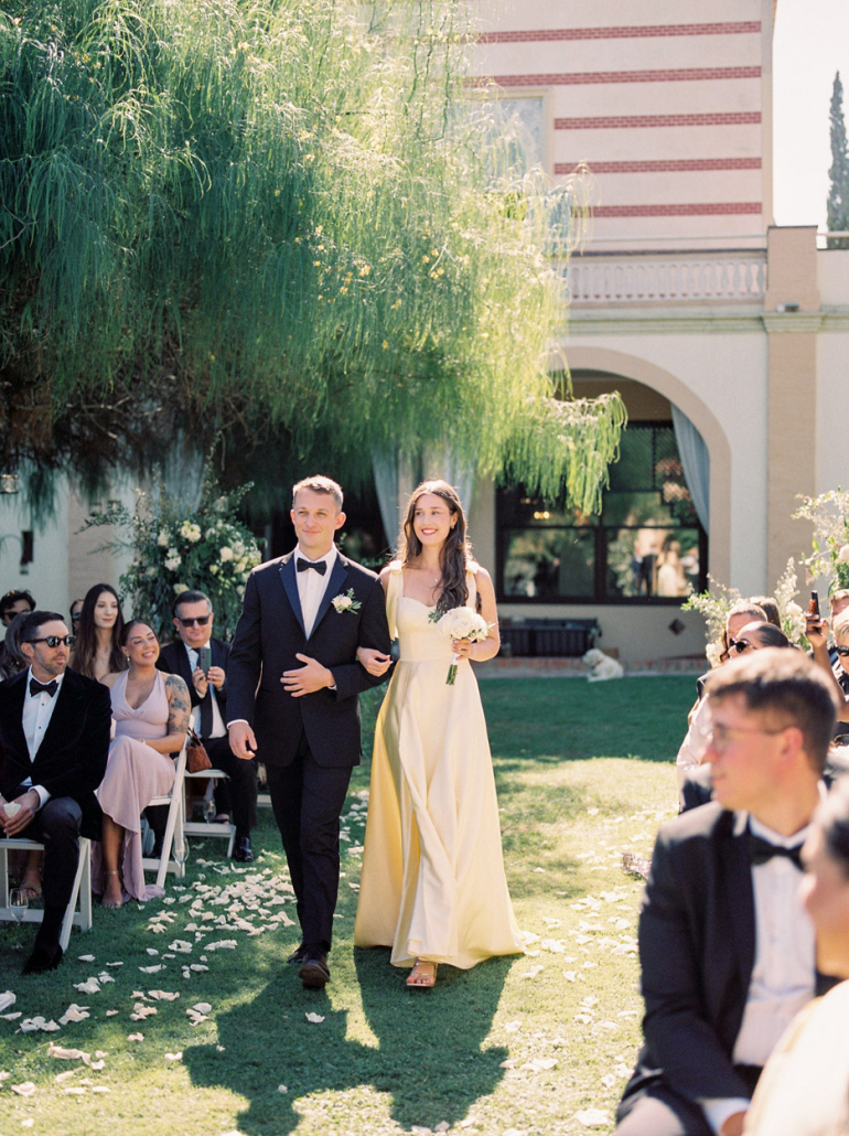 Seremonien var en kombinasjon av alt vi elsker – den ble veldig personlig og unik. Vi ønsket å skape en avslappet og varm atmosfære, så vi startet med å servere drinker til gjestene før vigselen. Chris ble fulgt opp av min mor til musikk fra Kygo, noe vi elsker fordi det er EDM og norsk. Brudepikene og groomsmen gikk opp til en sang av ODESZA, mens jeg selv hadde drømt om å gå opp alteret til fiolin.