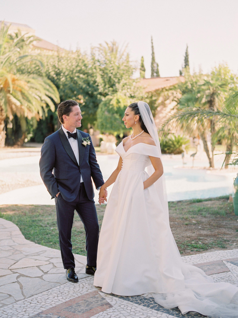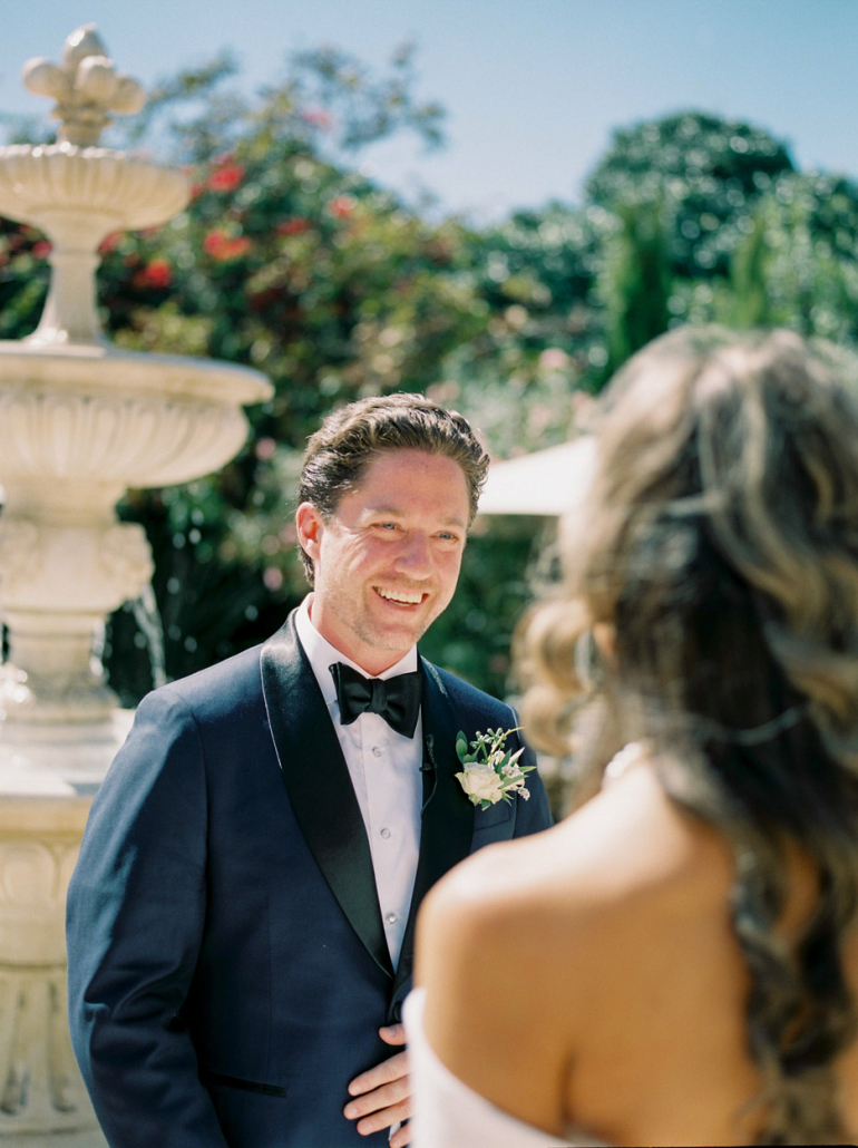 Bryllupet vårt var fylt med øyeblikk som vi alltid vil huske. Første gangen Chris så meg i kjolen under “first look” foran villaens fontene, var utrolig sterkt. Vi hadde valgt å ta dette øyeblikket for oss selv før seremonien, og det gjorde det ekstra spesielt.