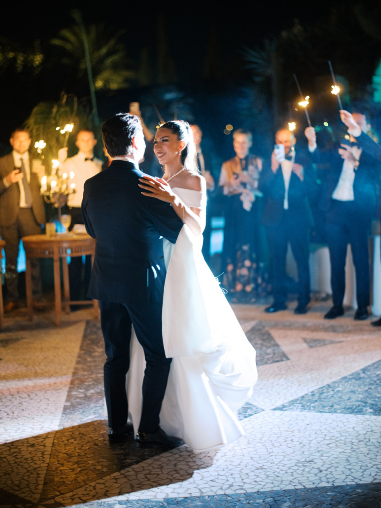 Vi ønsket å gjøre bryllupet til en tredagers opplevelse, og Gran Villa Rosa var den perfekte arenaen. Fredagen startet med en spansk aften med gitarist, tapas og åpen bar. Selve bryllupsdagen var fylt med småretter, mingling, og en middag som ble etterfulgt av kakekutting og vår første dans.