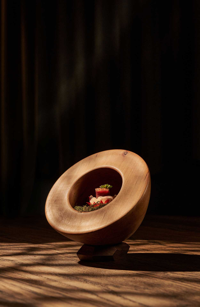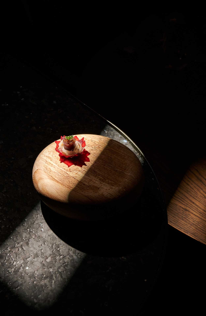 Her kan du velge mellom en 14 eller 20 retters omakase-opplevelse i en lekkert innredet restaurant i Bergen sentrum og kanskje prøve reinsdyrsashimi for første gang. Restauranten fikk sin første michelinstjerne i 2025.