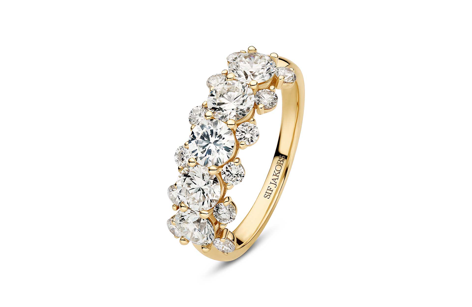 Ring fremstilt i 14k gull med polert overflate, besatt med 2,30 ct runde lab-diamanter. Diamantene har fargen TW G–H og klarheten VS, noe som gir en strålende glans.
