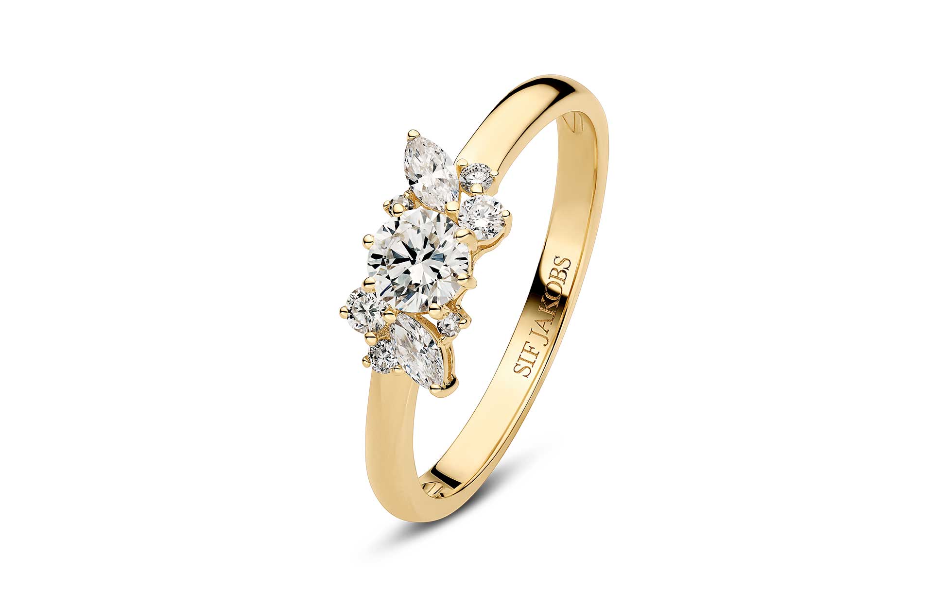 Ring fremstilt i 14k gull med polert overflate, besatt med 0,57 ct runde lab-diamanter. Diamantene har fargen TW G–H og klarheten VS, noe som gir en strålende glans.