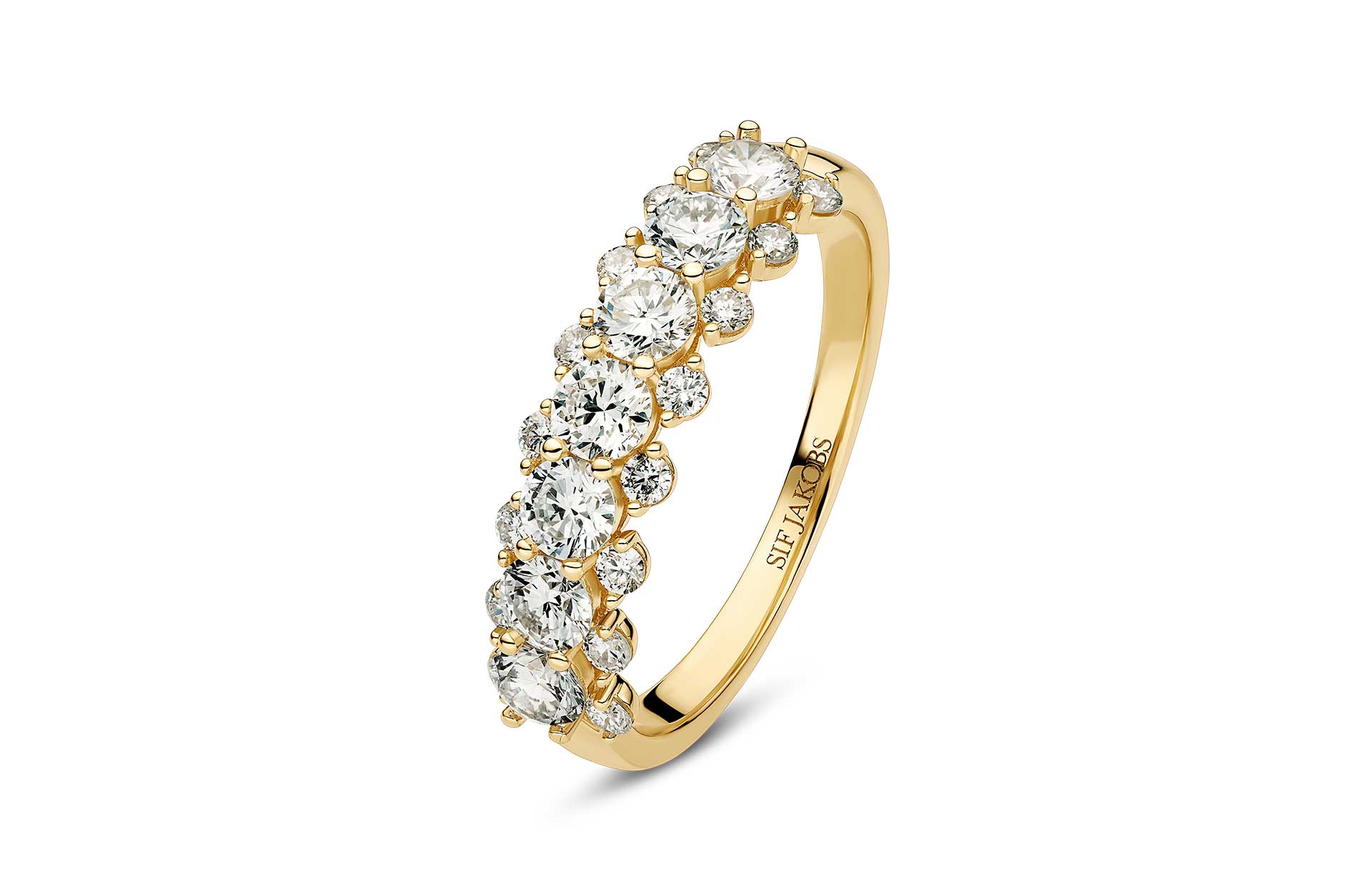 Ring fremstilt i 14k gull med polert overflate, besatt med 1,22 ct runde lab-diamanter. Diamantene har fargen TW G–H og klarheten VS, noe som gir en strålende glans.