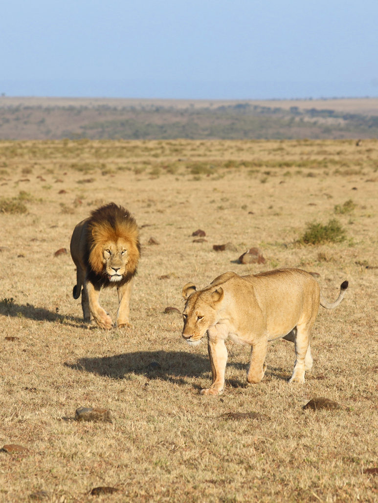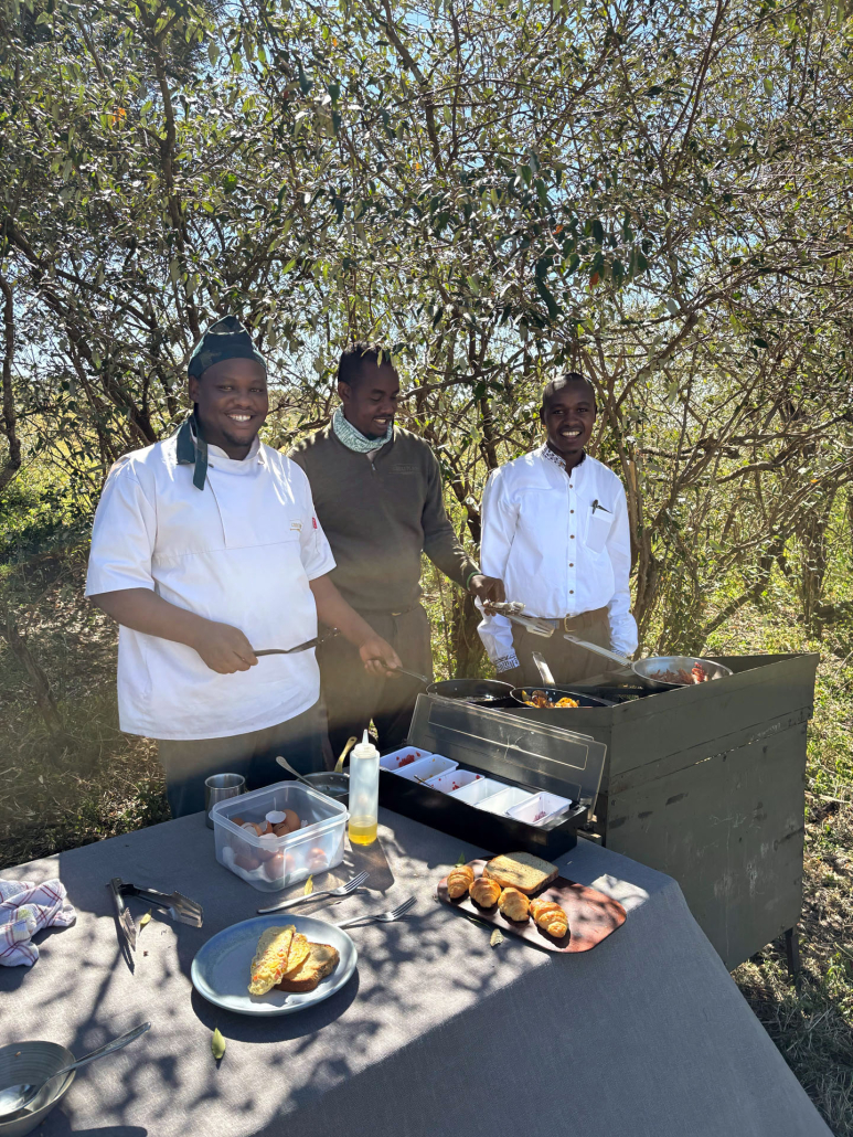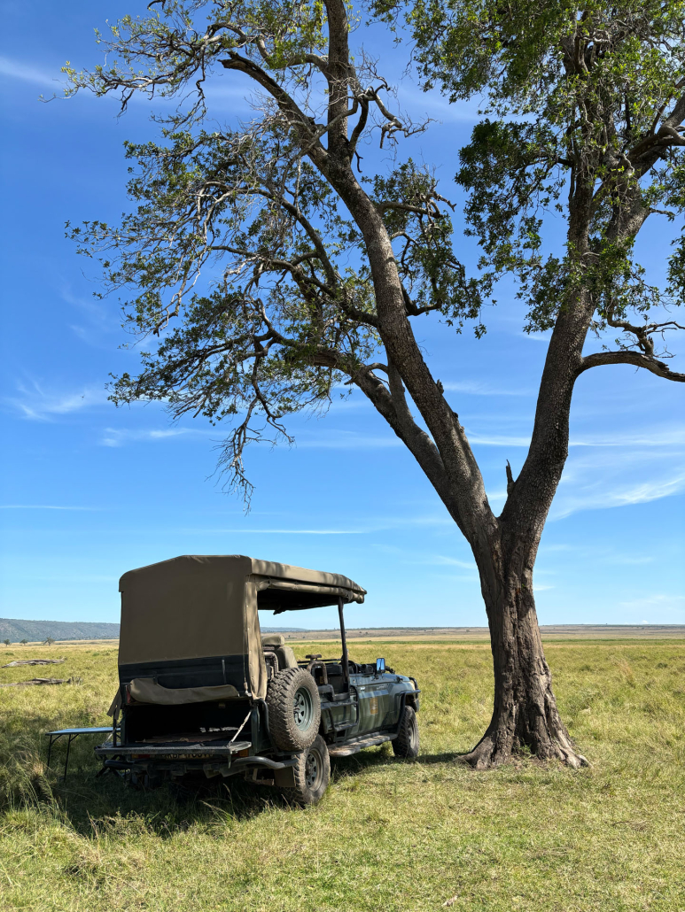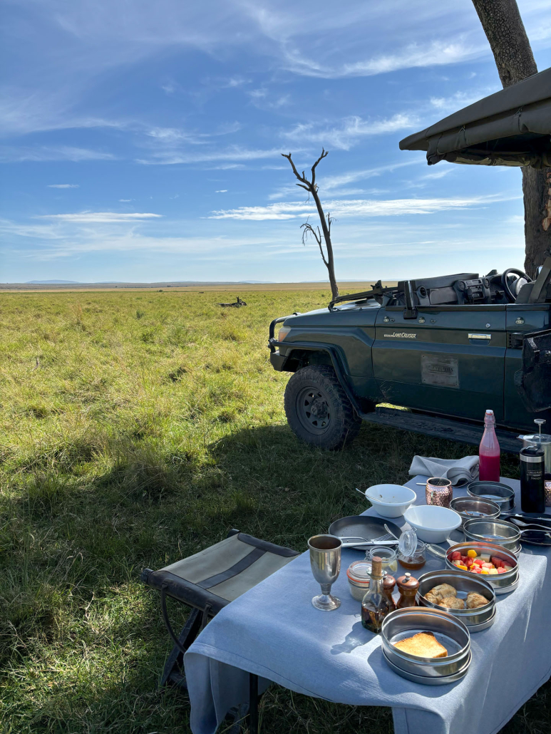På denne campen drar vi på en ganske spektakulær morgensafari. Først ser vi en løvefamilie som sleper med seg et bytte hjem fra nattens jakt, deretter en gjeng løver og hyener som forsyner seg av et bøffelkadaver. Vi ser elegante giraffer, elefanter og en leopard med unger! Vi kjører over store, grønne sletter der alle dyrene lever i symbiose – elefanter, sebraer, gnuer, topier og bøfler – og sangen «Circle of Life» begynner å spille på repeat i hodet mitt.