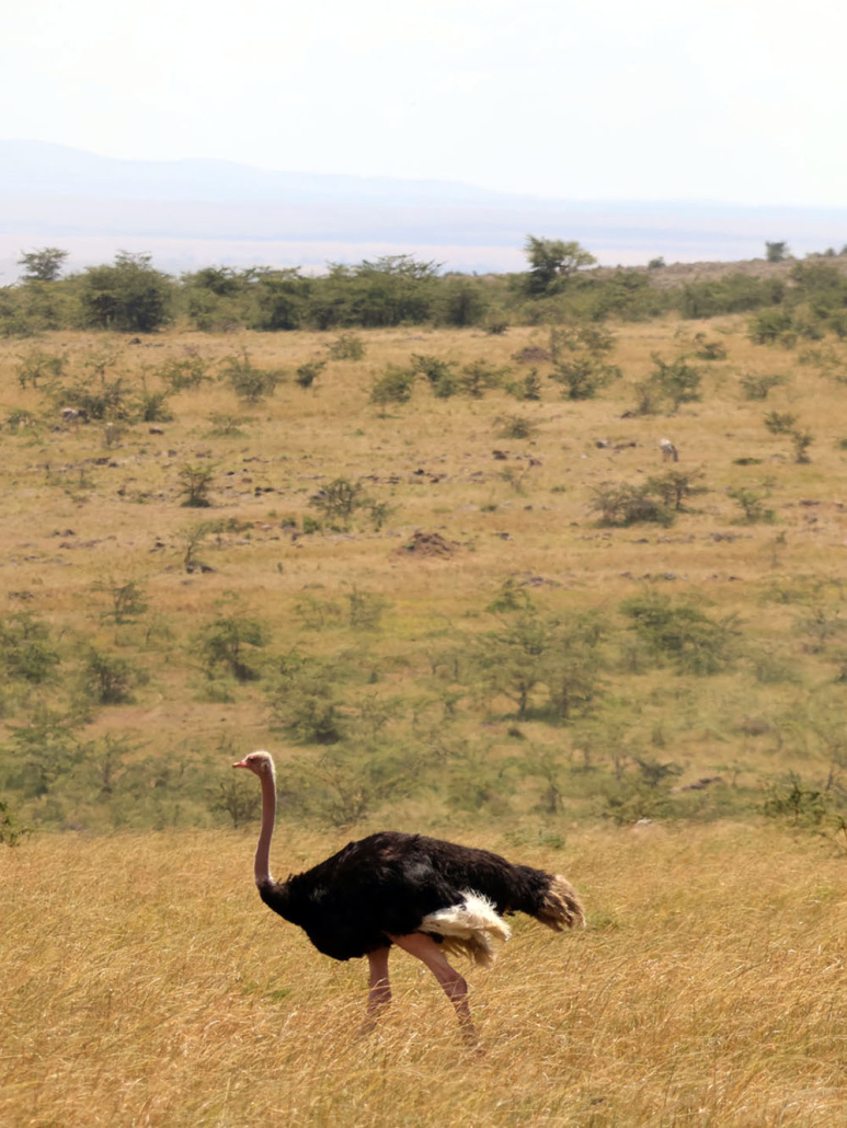 Vi stopper for en kaffepause. Jeg får vite litt mer om reservatet og dyrene som lever der, før det er tilbake i jeepen igjen. Antiloper, vortesvin og sebraer ser vi underveis. Strutsene gjør spesielt inntrykk – store og majestetiske fugler med kraftige bein, som ikke kan fly, bare løpe veldig fort. Bare noen få meter unna står de, og Nancy lærer meg forskjellen på hannstrutsene, som er svarte og rosa, og hunnene, som er grå.