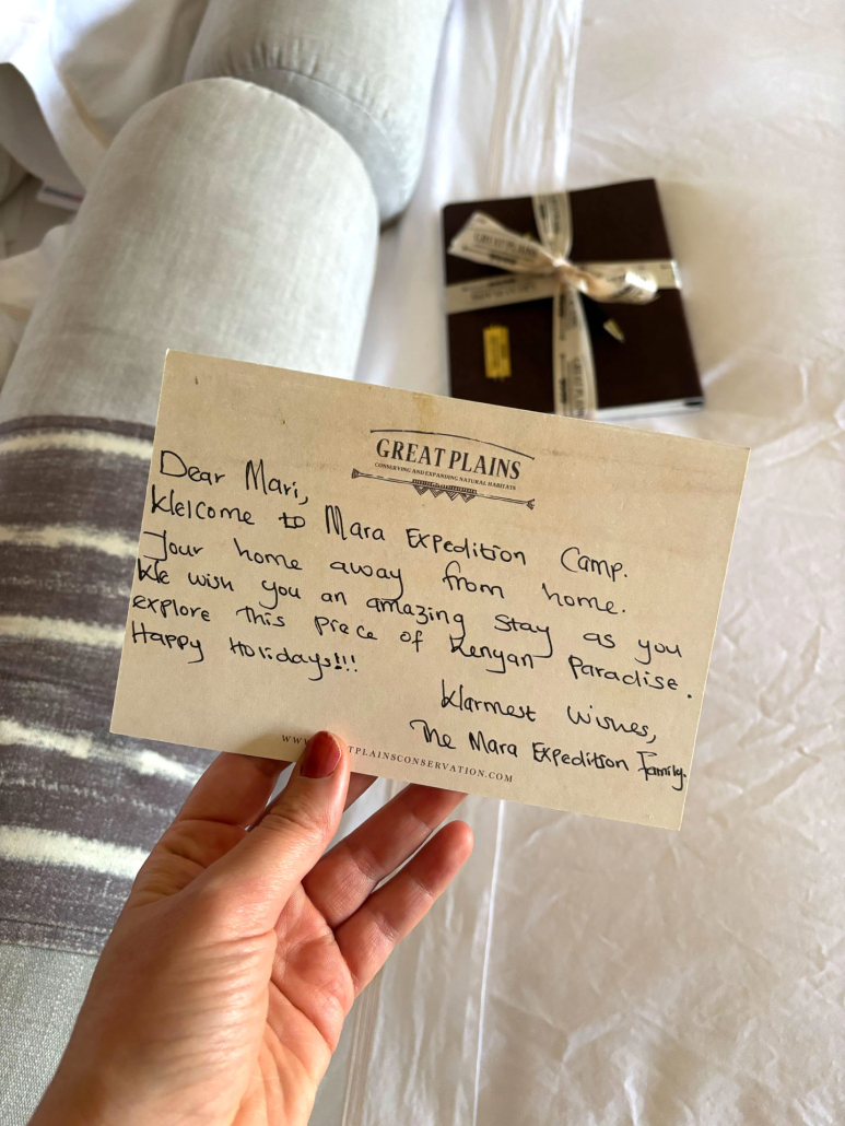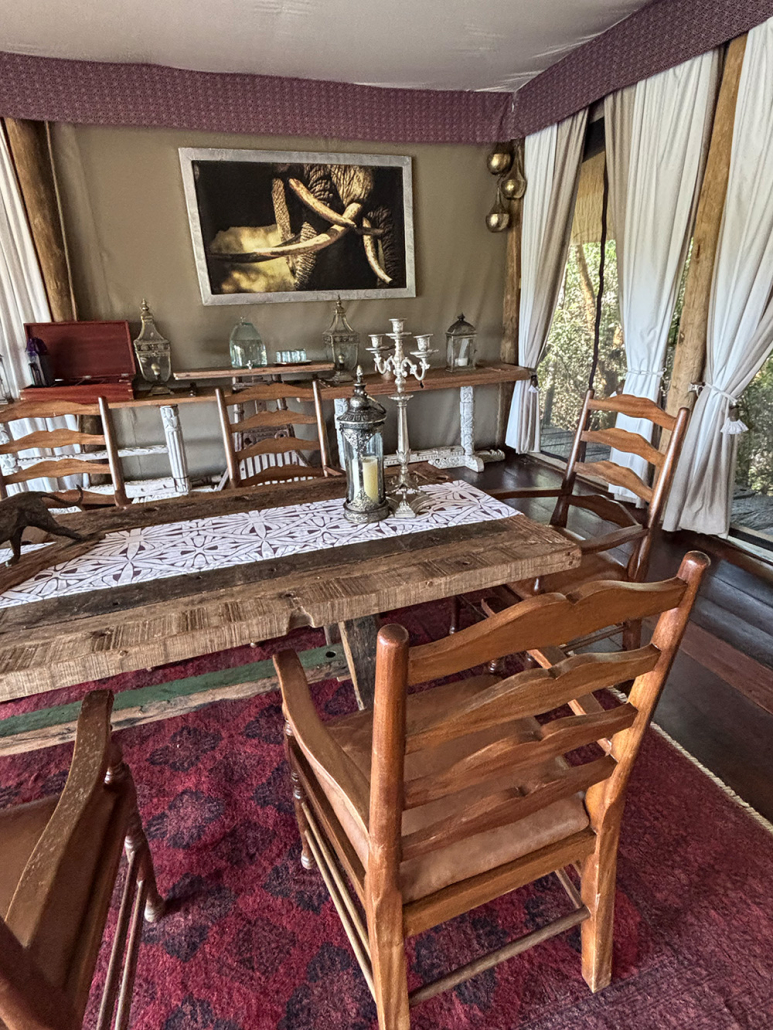 Mara Toto Tree Camp er den nyeste campen som Great Plains tilbyr, og det merkes. Det er ekstremt høy standard på både campens design og på de store rommene. Eller teltene, da. Hvert telt har tre store rom: en stue, et enormt soverom og et stort bad. Her er det grønnere og mer jungelaktig, med flere trær og en elv som renner gjennom området. Denne campen er bygget på påler noen meter opp i luften, og var kanskje den jeg gledet meg mest til å besøke. (Elsker trehytter!) Og selv om jeg har sett bilder av dette stedet på forhånd, overgår det alle forventninger. Stedet, rommet – og ikke minst personalet – gjør opplevelsen helt magisk.