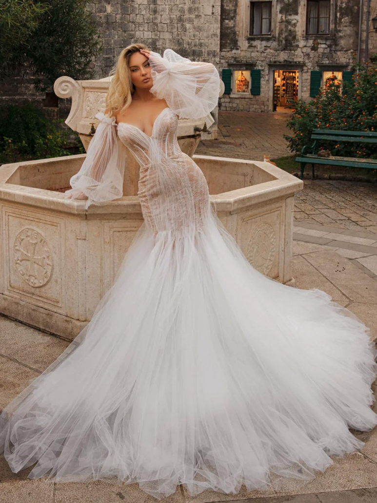 Bildene viser tydelig spennvidden: fra spektakulære catwalk-silhuetter til sofistikerte minimalistiske kjoler: «Vi vil vise at drømmekjolen kan være både unik og oppnåelig.»