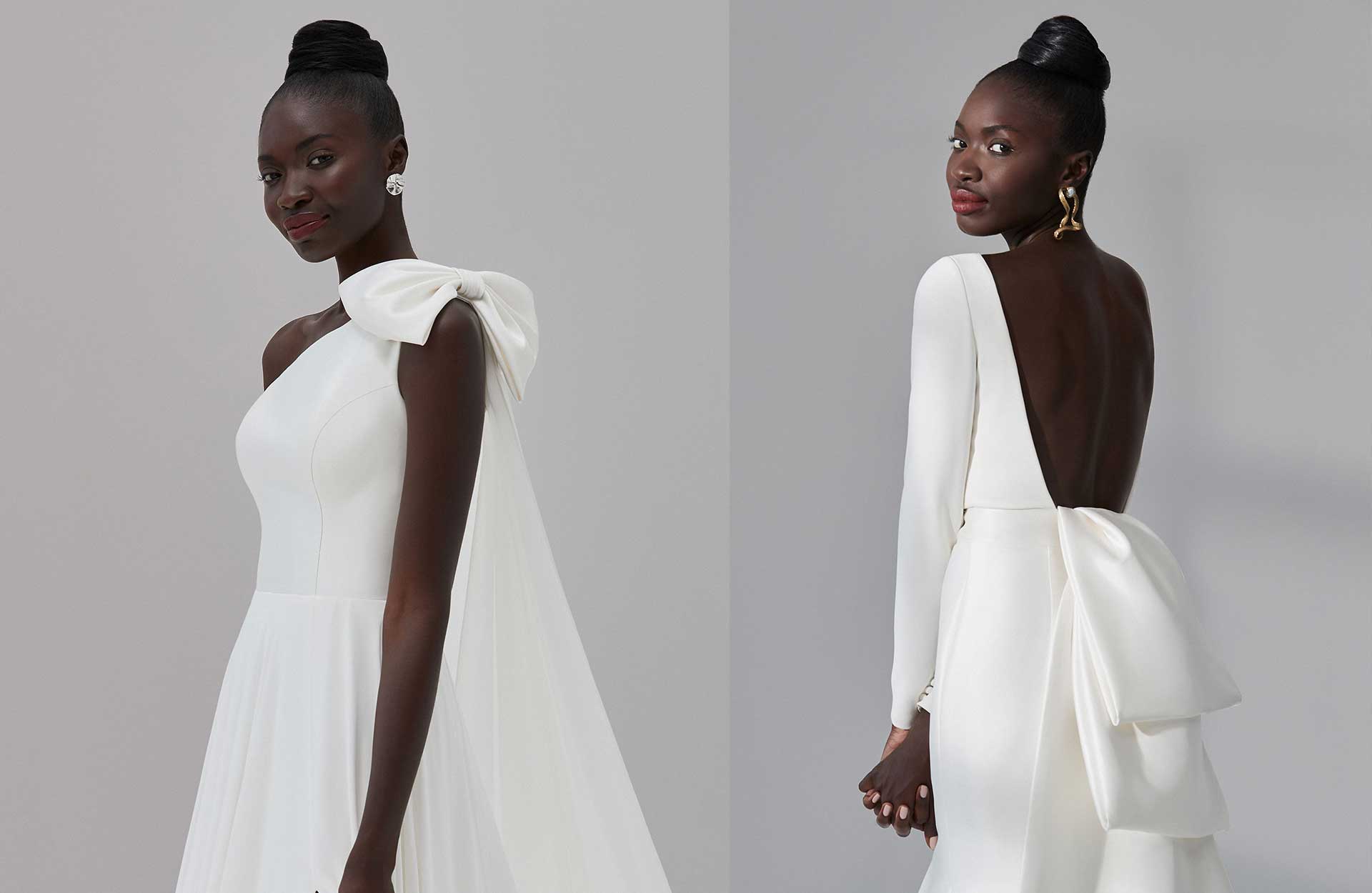 Noen av trendene vi ser fremover er nye tolkninger av klassiske silhuetter mens andre er noe vi aldri har sett tidligere. Fra overdimensjonerte sløyfer til enkle kjoler med åpne rygger. De mindre, intime og eksklusive bryllupene som har vært et signum siden pandemien brøt ut har satt sitt preg på bryllupsmoten og vi velger gjerne brudekjolen med største omsorg. Her lister vi 10 trender du kan holde et ekstra øye med.