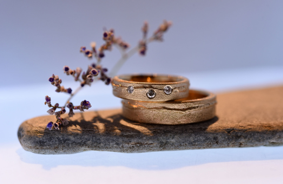 Det skal synes at våre smykker er laget for hånd, av dyktige gullsmeder. Vårt design er inspirert av den spektakulære naturen i det Arktiske nord og urbane vibber fra Tromsø by. Våre gifteringer lages med vekt på at de skal være behagelige å bære og skal vare år etter år. Siden vi lager ringene i vårt studio i Tromsø er det også mulig å sette eget særpreg på gifteringer, for å gjøre dem mer personlige. For høyere affeksjonsverdi tilbyr vi også å jobbe med kundens eget gull.