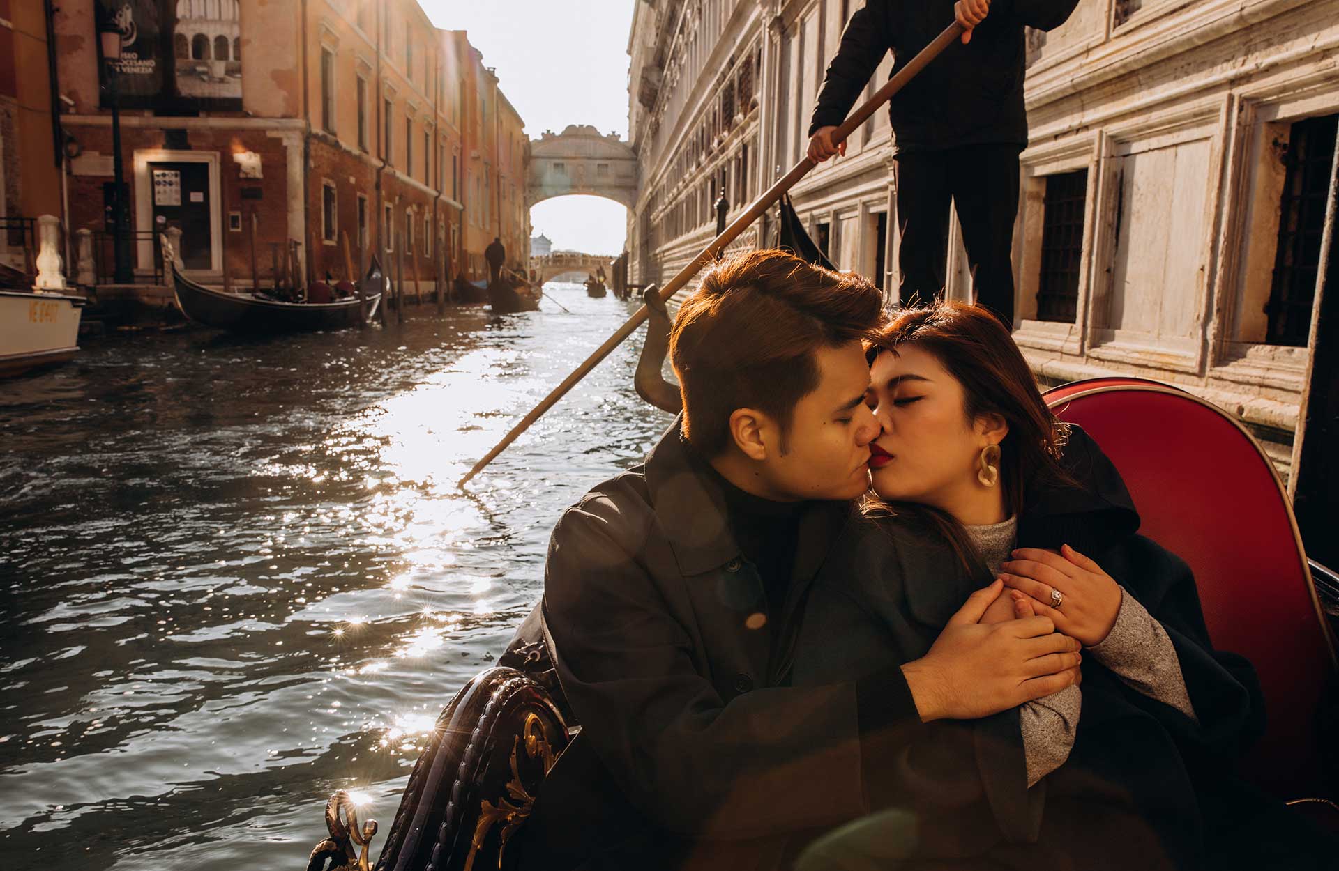 Det vanligste fremgangsmiddelet i Venezia for å komme seg rundt er med båt. Byen er nemlig fri for biltrafikk, så her kan du vandre i fred og ro uten å være redd for å bli kjørt ned av lidenskapelige trafikanter. I Venezia finnes det over 100 små kanaler og broer, og byen er bygget opp fra havbunnen – så en reise gjennom kanalene er virkelig som på film. Hvor romantisk er det ikke å sette seg ned i en gondol som nygift, mens dere ser solnedgangen gå ned over et vernet kulturminne? Venezia er som et levende museum for deg som elsker italiensk kulturhistorie. Bygninger i gotisk stil, palass i marmor, klokketårn og kupler som reflekteres i det glitrende vannet under en blå Adriaterhavshimmel er blitt malt, fotografert og filmet i en slik grad at det er vanskelig å skille den virkelige byen fra dens romantiske representasjoner. Atmosfæren som møter dere, er som om å bli transportert i en annen verden som vil bli limt i minnet deres for alltid.