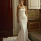En spektakulær blomstret brudekjole i prinsessmodell med drapert off-shoulder overdel, perfekt for enhver brud som vil stikke ut! Med nydelig mykt lavendeltrykk som dekker hele kjolen, ned til et fantastisk slep, som lekkert sveper bak bruden.