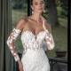 Et vakkert og romantisk design med en korsettlignende overdel med sweetheart-utringning og off-shoulder-chiffonstropper. Blomsterblonden faller nedover et voluminøst tyll- og blondeskjørt, og skaper et helt fantastisk utseende for din store dag.