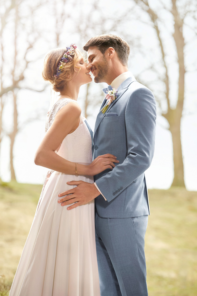 Blått har som kjent vært den dominerende fargen på dressene de siste årene. Blått er en klassisk og moderne farge som kler de aller fleste og som det både går an å bære i bryllup og ved andre festlige anledninger året rundt. I tillegg til den blå farageskalaen som strekker seg fra kornblått til dyp midnattsblå ser vi også at andre duse farger tar plass. Mørkt mosegrønt, vinrødt og også nyanser av brunt er farger som blir stadig mer populære og synlige i motebildet.